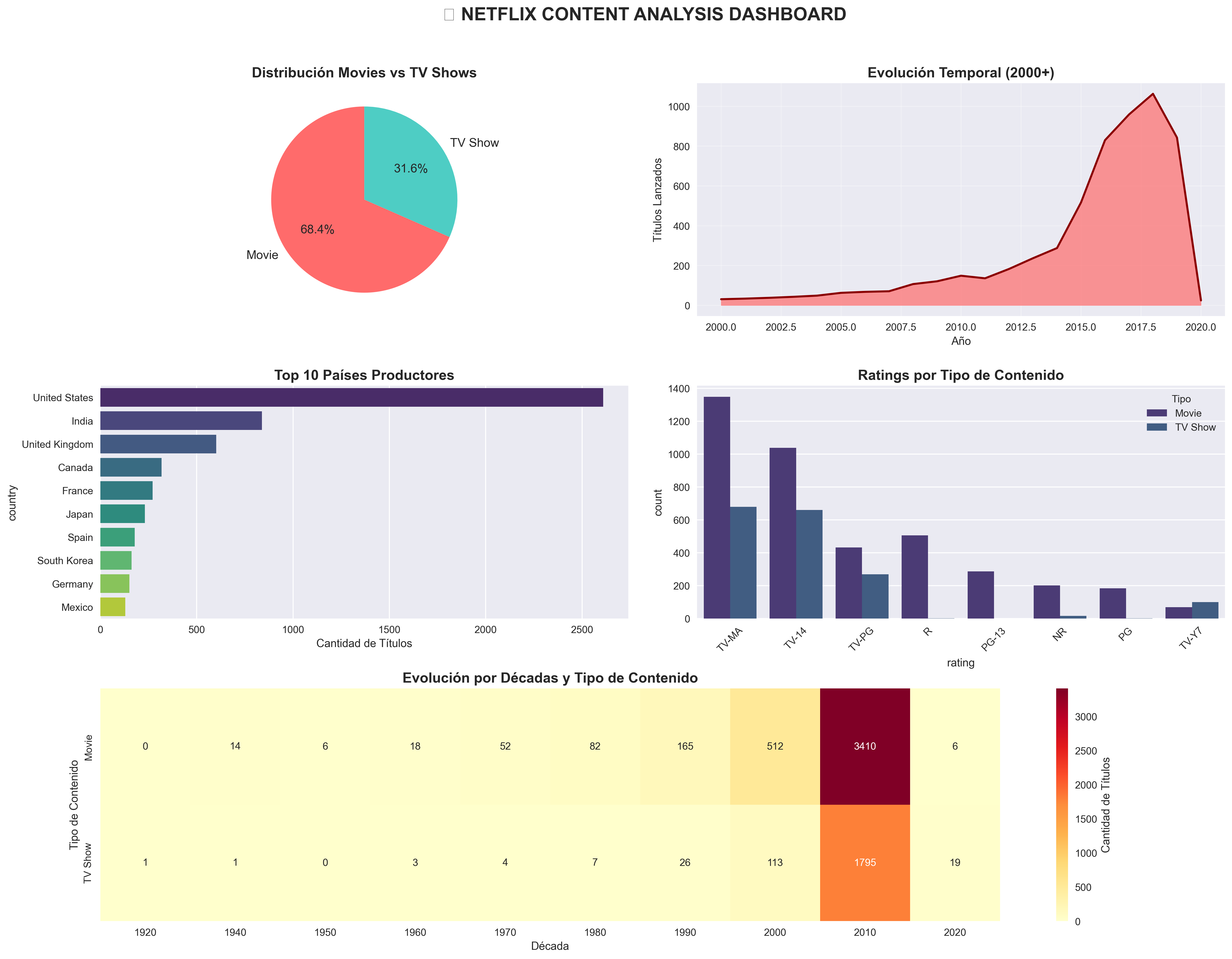 🎬 Exploración del Dataset Netflix — Análisis Visual y Estrategia de Contenido¶