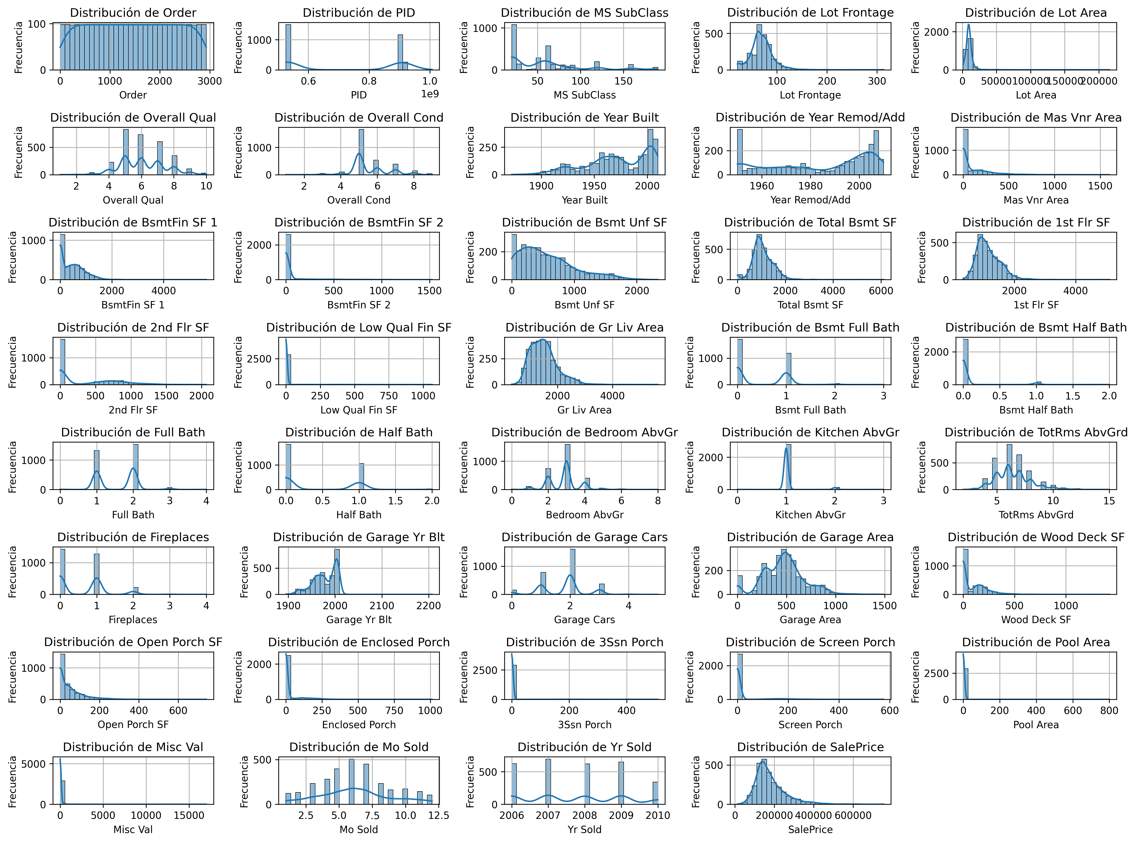 | Variables clave | SalePrice, Lot Area, Year Built, Garage Area, Overall Qual, Gr Liv Area |